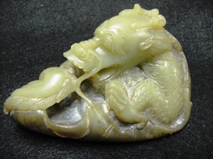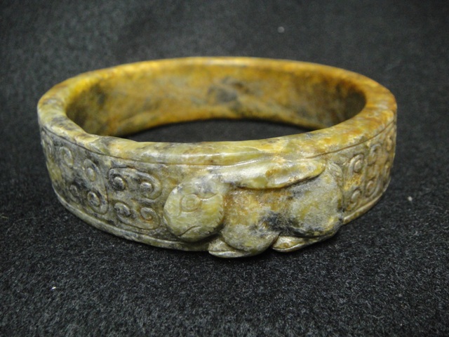 個人藏品以明 清件為主,這件是少數高古玉之ㄧ,青黃玉質,呈現土咬沁,土黃沁,水銀沁。